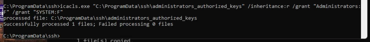 Using the USB flash, copy your public key to the ssh folder and run the following command